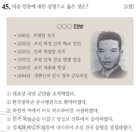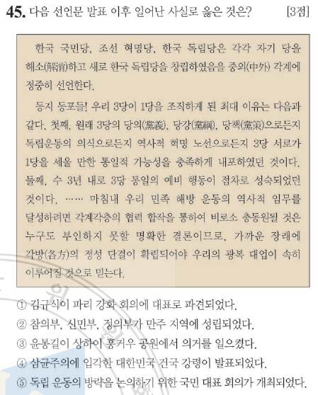 3. 한국광복군은 1942년에 김두봉의 조선의용군을 흡수하였다.