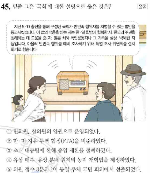 이를 해결하고자 1대 국회의원들은 49년 6월에 유상매수 유상분배 원칙의 농지개혁법을 제정해.<★★★★★>