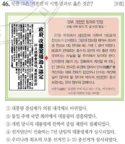 3. 2차 개헌으로 인하여 대통령 직선제가 시행되었다.