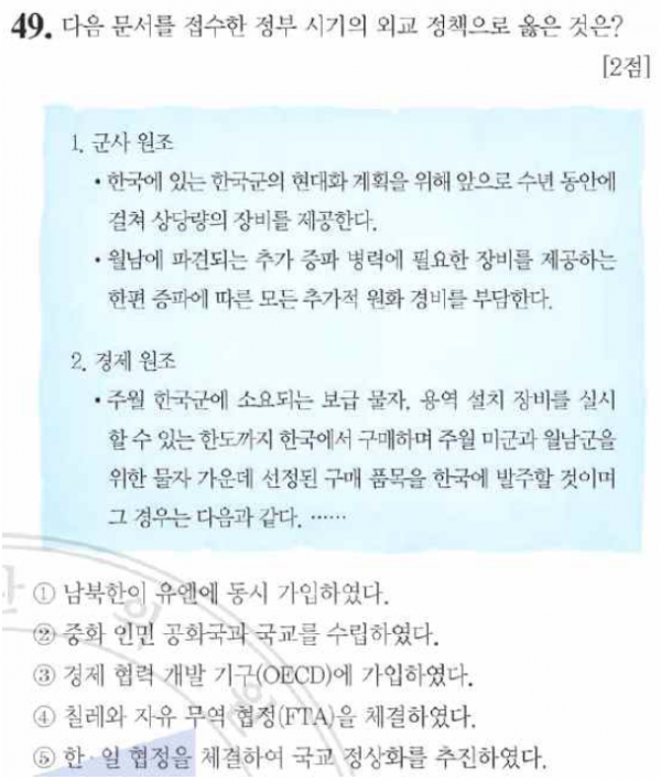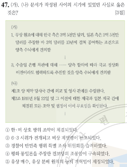 2번. 한일회담 후 1964년에 6.3시위가 일어났지. 정답.