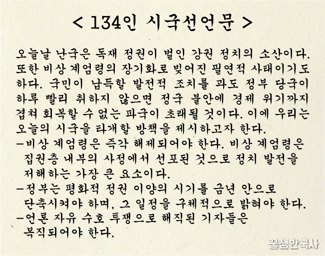 또한 이런 분위기에서 5월 15일 지식인 134인 시국 선언문이 발표돼.