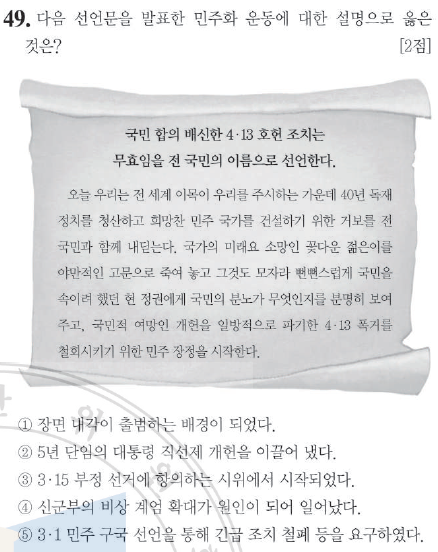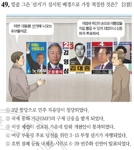 3번 : 5년 단임 대통령 직선제 개헌 ㅇㅋ. 정답!